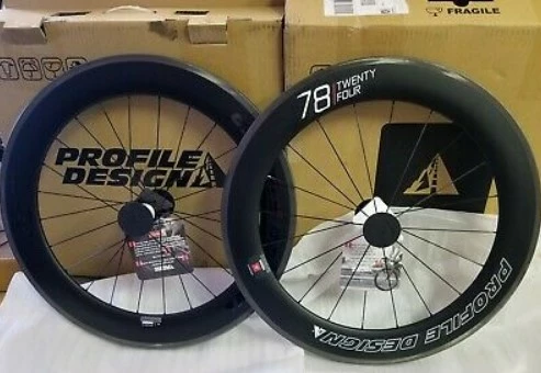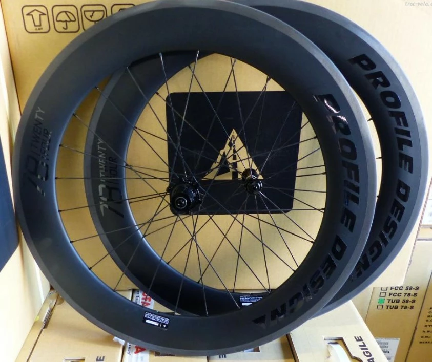 La paire de roues Profile Design 78 Twenty Four (100 % carbone) est dotée de moyeux TwentyFour forgés à partir d’aluminium 6061-T6 et usinés avec précision à une tolérance de l’ordre du millième de millimètre pour produire d’incroyables durabilité, solidité et rigidité.